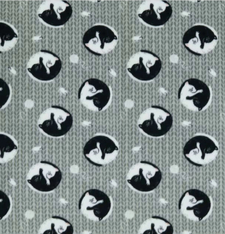 • Design features yin and yang kitties, with versatile black and gray color combination.  Ties are gray patterned (as in the second photo). Gray solid fleece on reverse of bed.