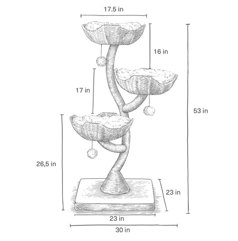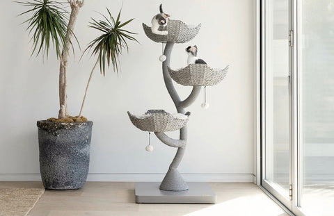 With four cozy baskets at varying heights ranging up to 53” and a uniquely curved trunk wrapped in scratching rope that will entice any natural climber, Ivy is a beautifully balanced cat tree that will bring as much stylish zen to your modern home as comfort and security to your cherished companion(s).