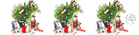 • Christmas Tree Kittens design by artist Kim Haskins surrounds the candle